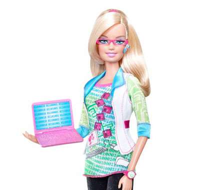 :要问世界上哪位女性身兼上百种职业,却还依然乐此不疲,当然是芭比娃娃。她做过演员、歌手、空姐、舞女、公主甚至**夫人和女*。如今,她又新增了一个职业——电脑工程师。据说他这份职业是广大网友票选出来的,“电脑工程师”这份职业在四个星期内迅速超过主播,环保人士,外科医生和建筑师的票数,因而也就有了我们现在看到的这款手捧粉红色笔记本的芭比娃娃。